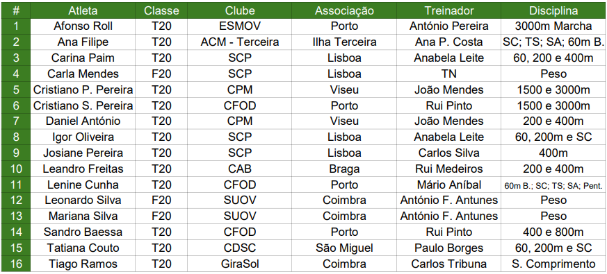 Para representar Portugal no Campeonato do Mundo de Pista Curta VIRTUS, que se vai realizar em Ourense, Espanha, de 6 a 8 de março de 2026, a FPA convoca os seguintes atletas: