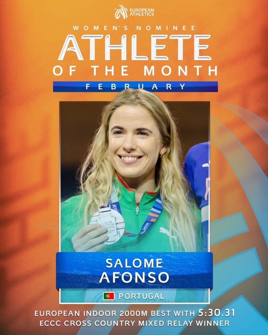A nomeação surge na sequência de um mês sólido e impactante. Em Liévin, Salomé registou 5.30,31 nos 2000 metros em pista coberta, a melhor marca europeia do ano na distância. Um tempo que a colocou no topo das listas continentais e reforçou o estatuto crescente no meio-fundo europeu.