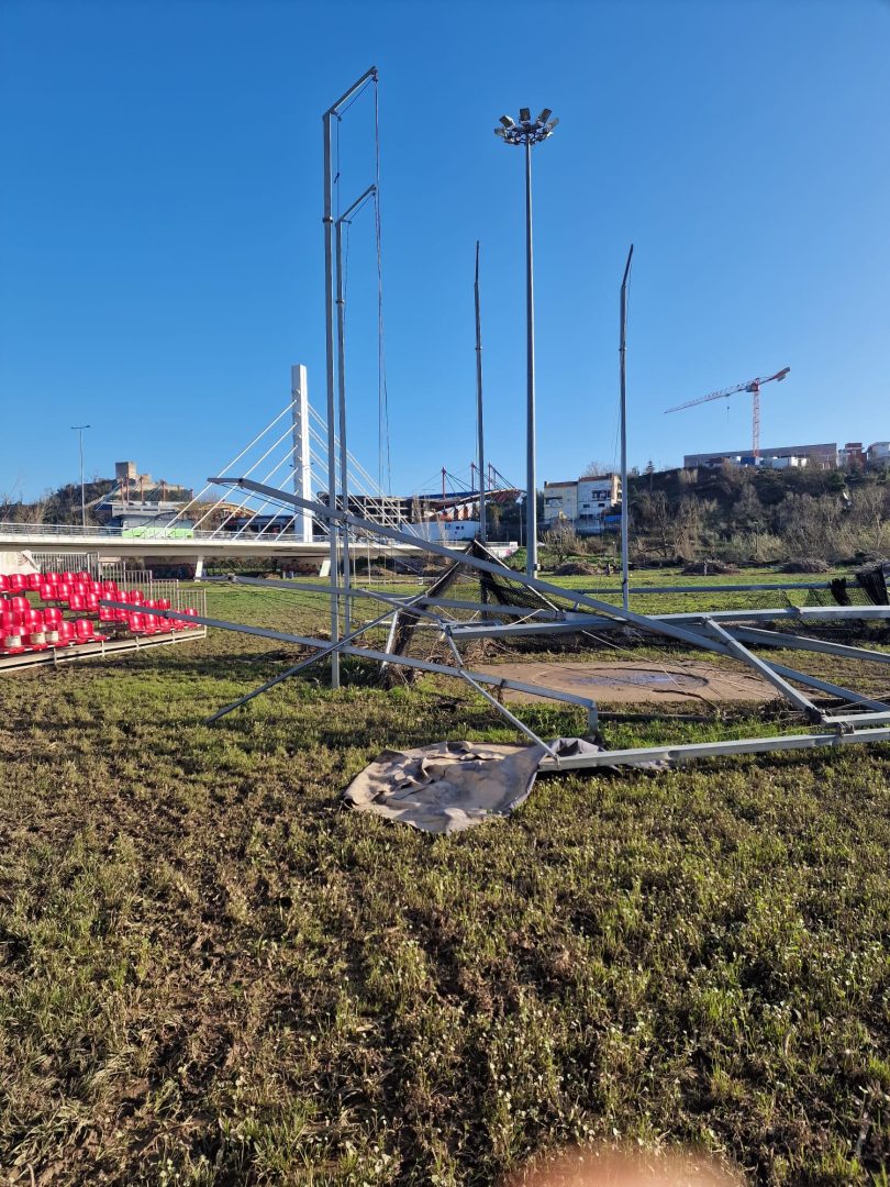 O presidente da Federação Portuguesa de Atletismo inteirou-se esta sexta-feira dos estragos provocados pelo mau tempo, primeiro no Centro de Lançamentos em Leiria. Depois nas instalações do Expocentro, em Pombal, onde a pista curta ficou sem condições de utilização.