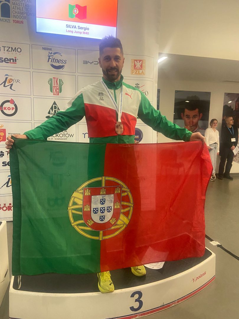 A manhã começou com um grande feito. Sérgio Silva, a competir no escalão M40, conquistou a medalha de bronze no salto em comprimento. A sua performance fez estabelecer um novo recorde nacional para o escalão, com a marca de 6,77 metros.